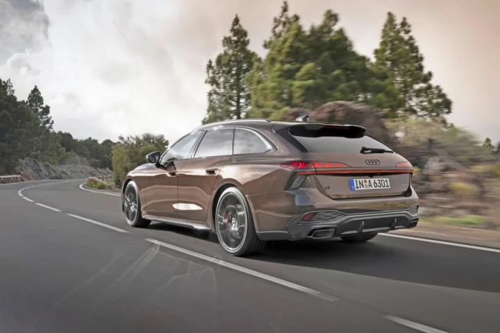 Logischerweise ist die Schokoladenseite eines jeden Kombis der Blick nach hinten. Wir übertreiben nicht, wenn wir sagen, dass sie hervorragend gelungen ist. Der Blick fällt sofort auf die seitlich ausladenden Rückleuchten mit optionaler OLED-Grafik, die auch Kommunikationsfunktionen erfüllen. Beispielsweise leuchten die Rückleuchten heller auf, wenn man dem Fahrzeug zu nahe kommt. Abgerundet wird das Bild durch einen feinen, schmalen LED-Streifen, der sich über die gesamte Breite erstreckt. Die stark ausgeprägte ovale Form der Heckklappe, die an den Audi A6 C5 der zweiten Generation (1997–2005) erinnert, hinterlässt Eindruck.